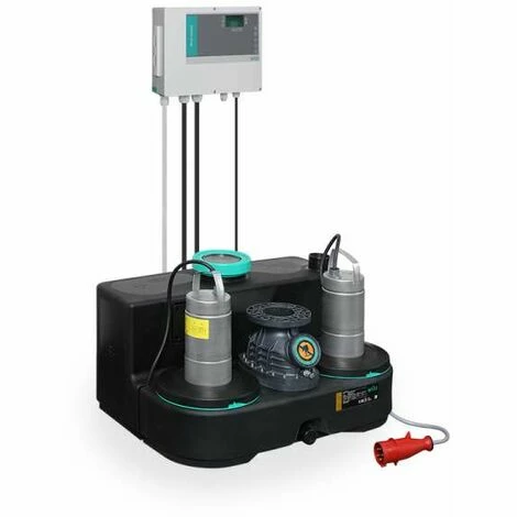 Kompakte, anschlussfertige und vollüberflutbare Doppelpumpen-Hebeanlage zur Förderung von fäkalienhaltigem Abwasser.
