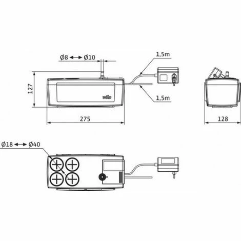 für Brennwertgeräte, Kühl- und Klimaanlagen, mit visuellem und akustischem Alarm, vier anpassbare Zuläufe, Kondensat-Neutralisation durch eingebaute Granulatkammer, Granulat, bestehend aus: Heberanlage mit Niveausensor, Behälter, Abdeckung und Wartungsdeckel, 1,5 m langes Elektrokabel, 1,5 m Alarmkabel, integrierte Störmeldung als Wechsler (Öffner/Schließer), Druckschlauch druckseitig (Ø 8 mm, 5 m), 2x anpassbare Gummidurchführung Ø 2/32, 2x Schrauben (Ø 4), 2x Dübel für Wandbefestigung, Einbau- und Betriebsanleitung